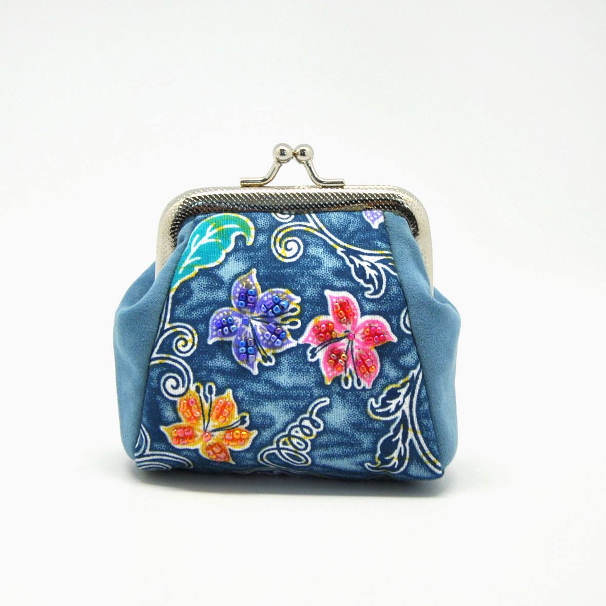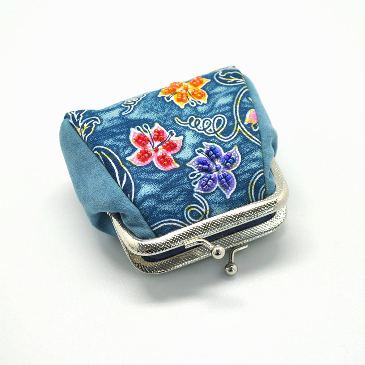 Keep your coins and other small necessities in a fashionable way with this handmade batik coin purse, which has a rich blue flowery design. It is very lightweight, yet sturdy and durable enough to use daily because it is made of high-quality fabric and reinforced with a sturdy metal clasp frame.