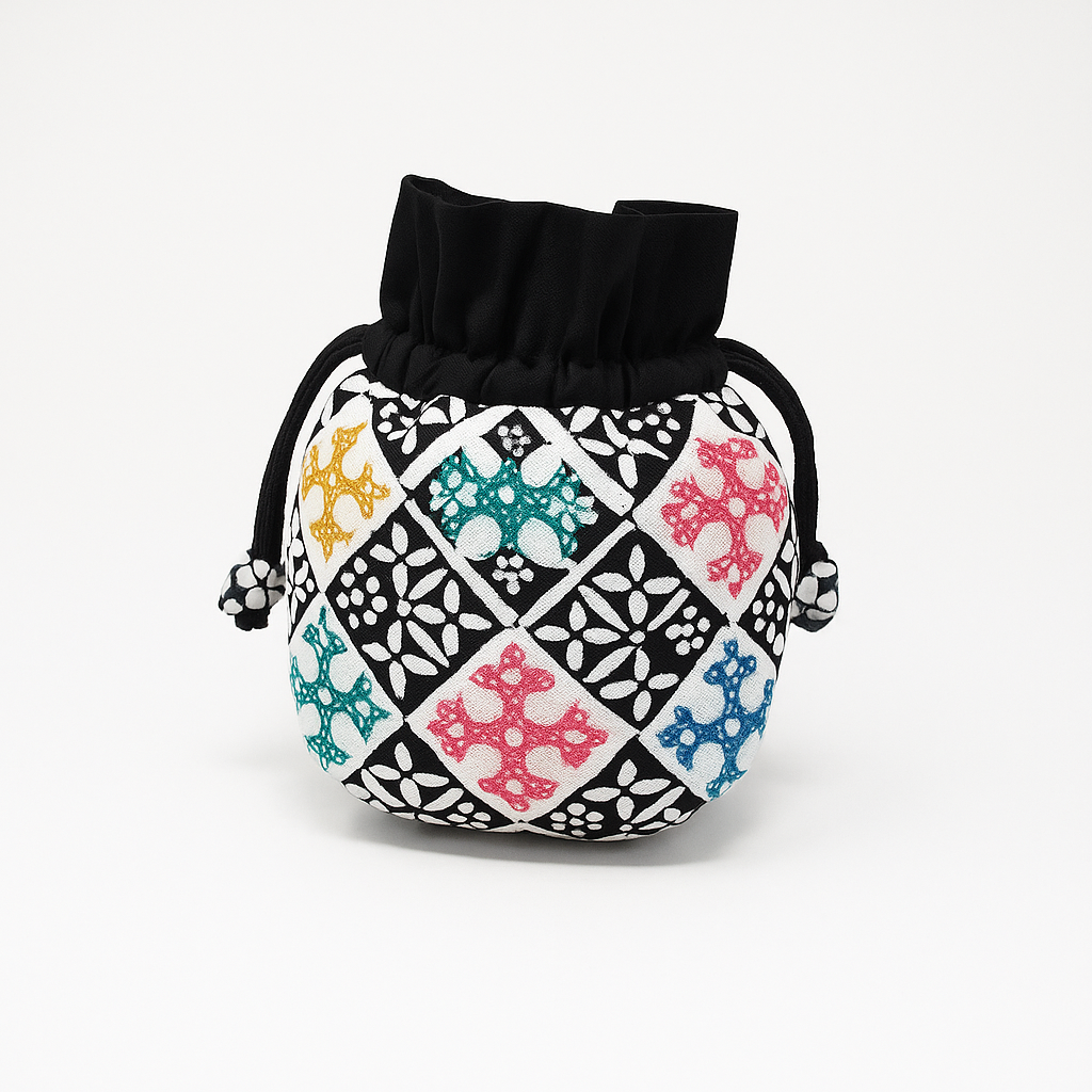 Batik Mosaic Drawstring Pouch – Black & White
