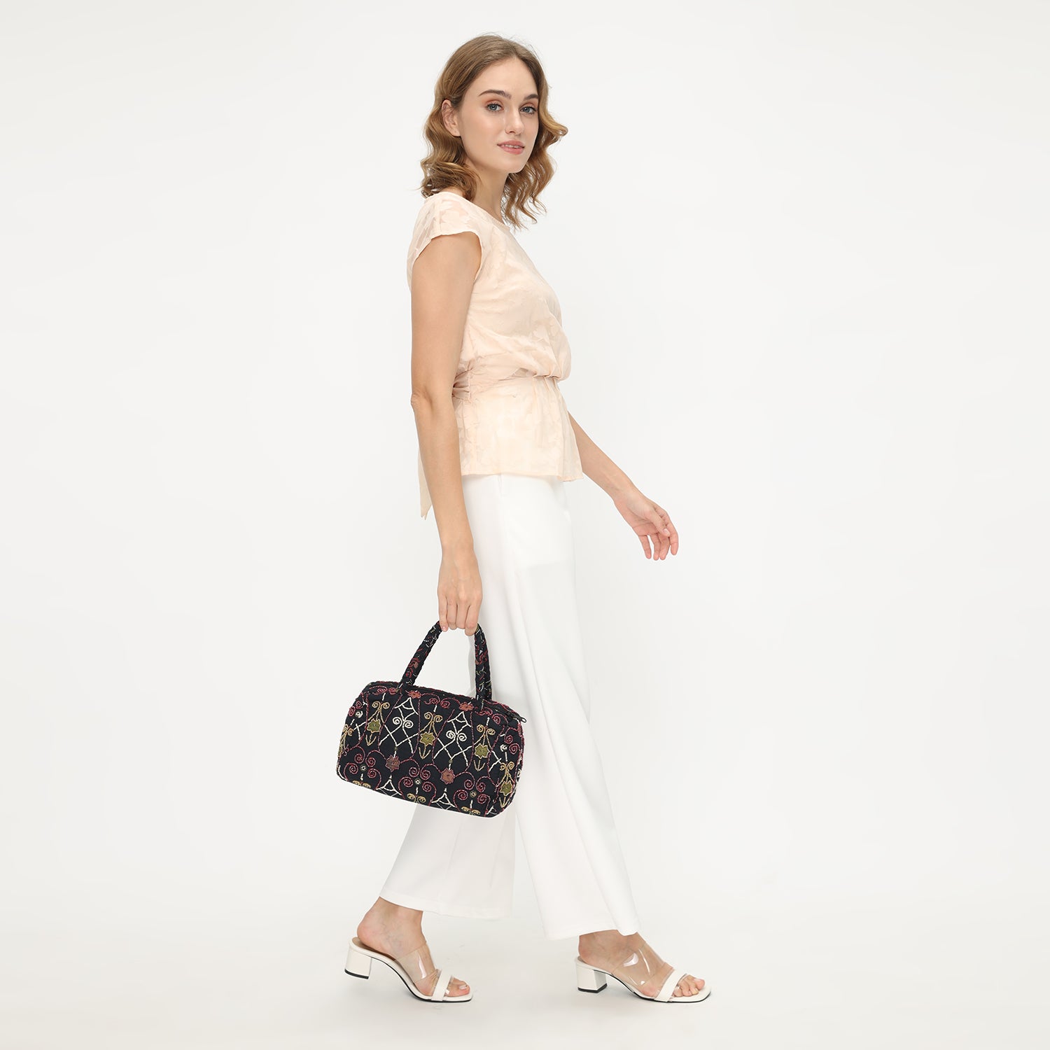 A beautifully handcrafted Batik Beaded Bag showcasing intricate lattice-inspired patterns adorned with vibrant, detailed beadwork. The rich design and cultural artistry make this bag a perfect blend of tradition and modern elegance. Ideal for adding a touch of sophistication and uniqueness to any outfit, whether for casual outings or special occasions.