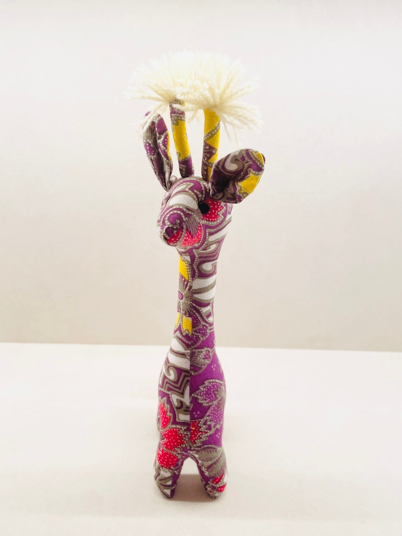 It is playful and stylish because of its soft texture and eye-catching patterns. The Batik Violet Giraffe would be a beautiful addition to your home whether on a shelf, in the childs room or as a batik collection.