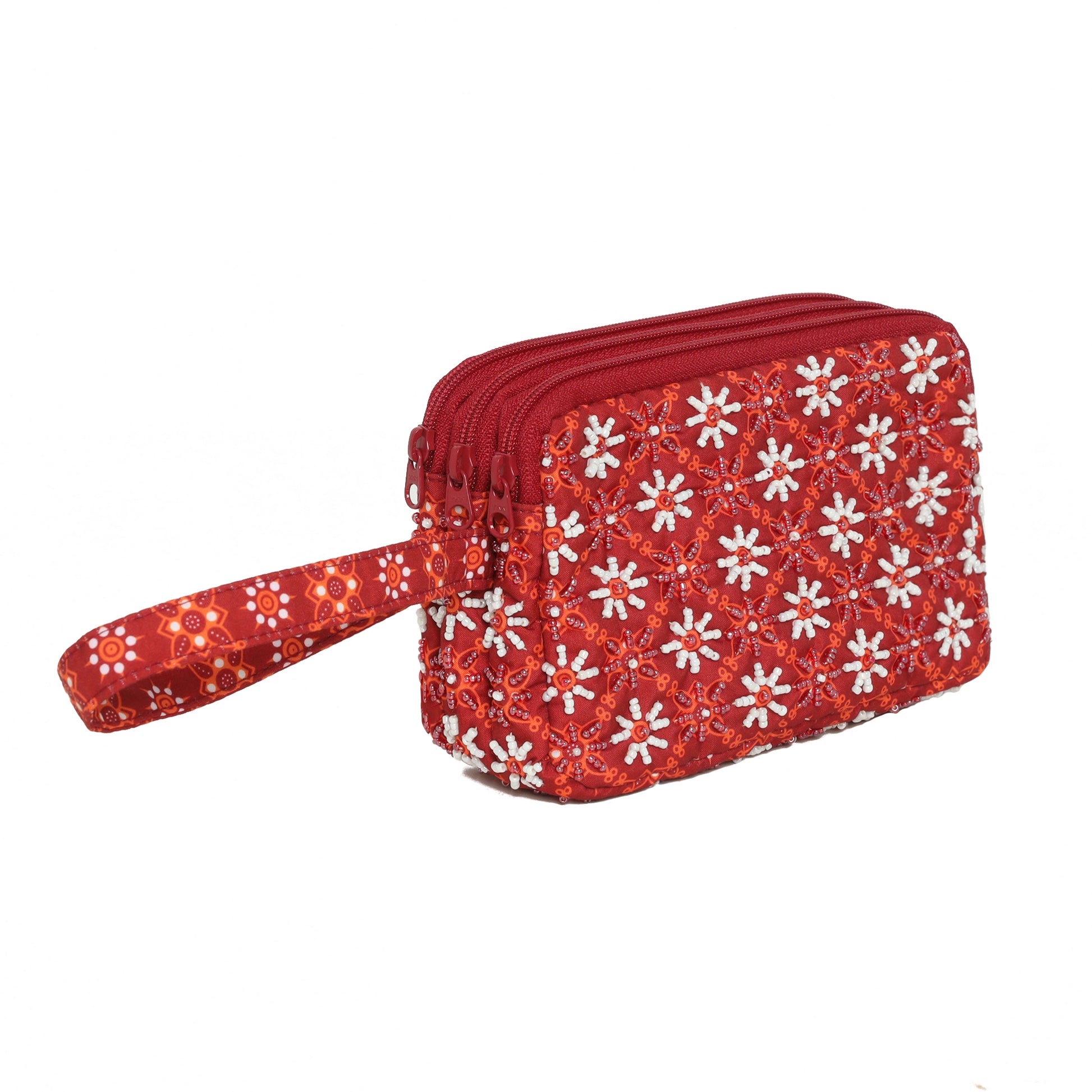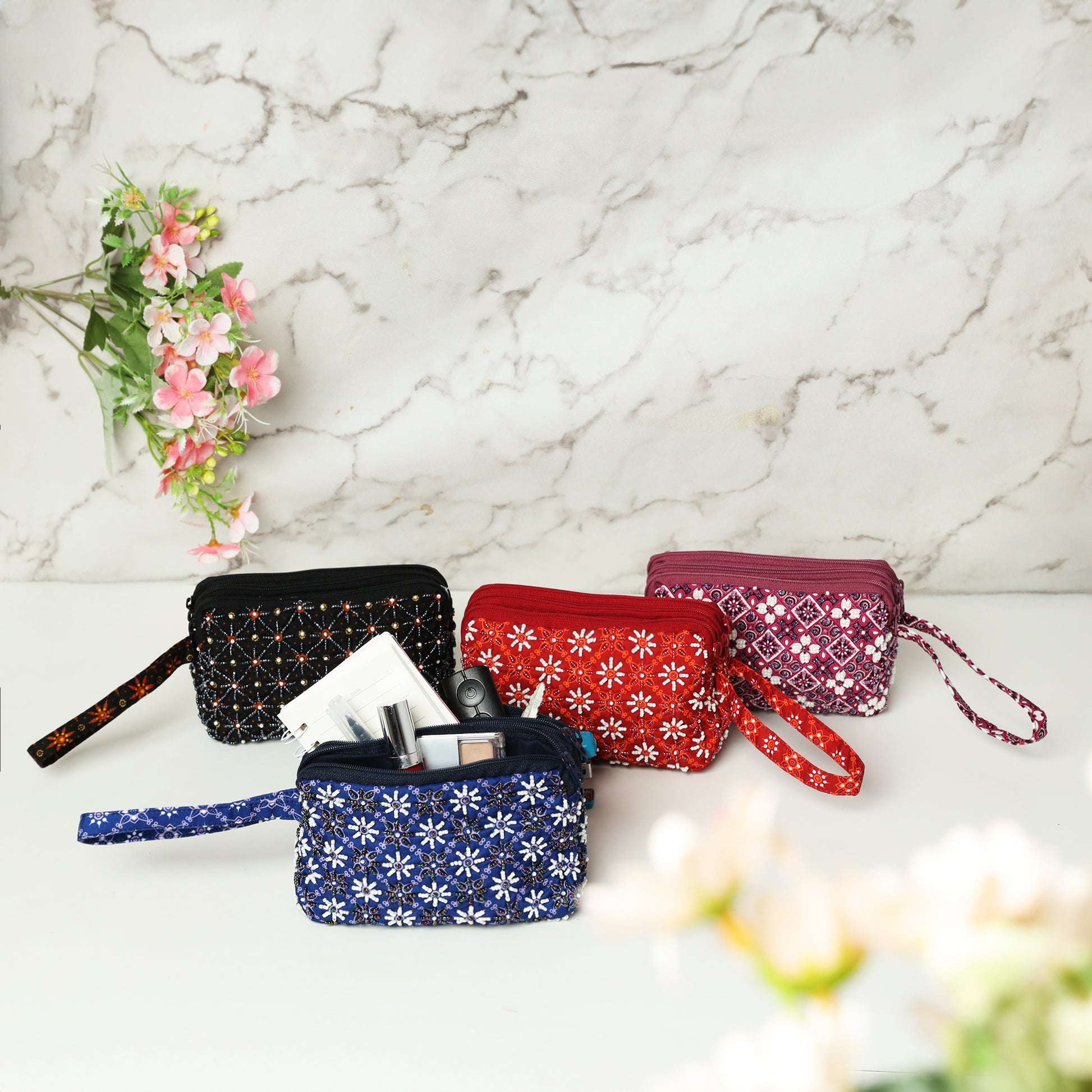 This beautifully handcrafted coin pouch features intricate beadwork on vibrant batik fabric. Perfect for storing coins, keys, or small essentials, it comes with a secure zipper closure. Compact, stylish, and available in multiple colors, it’s a charming blend of tradition and function.